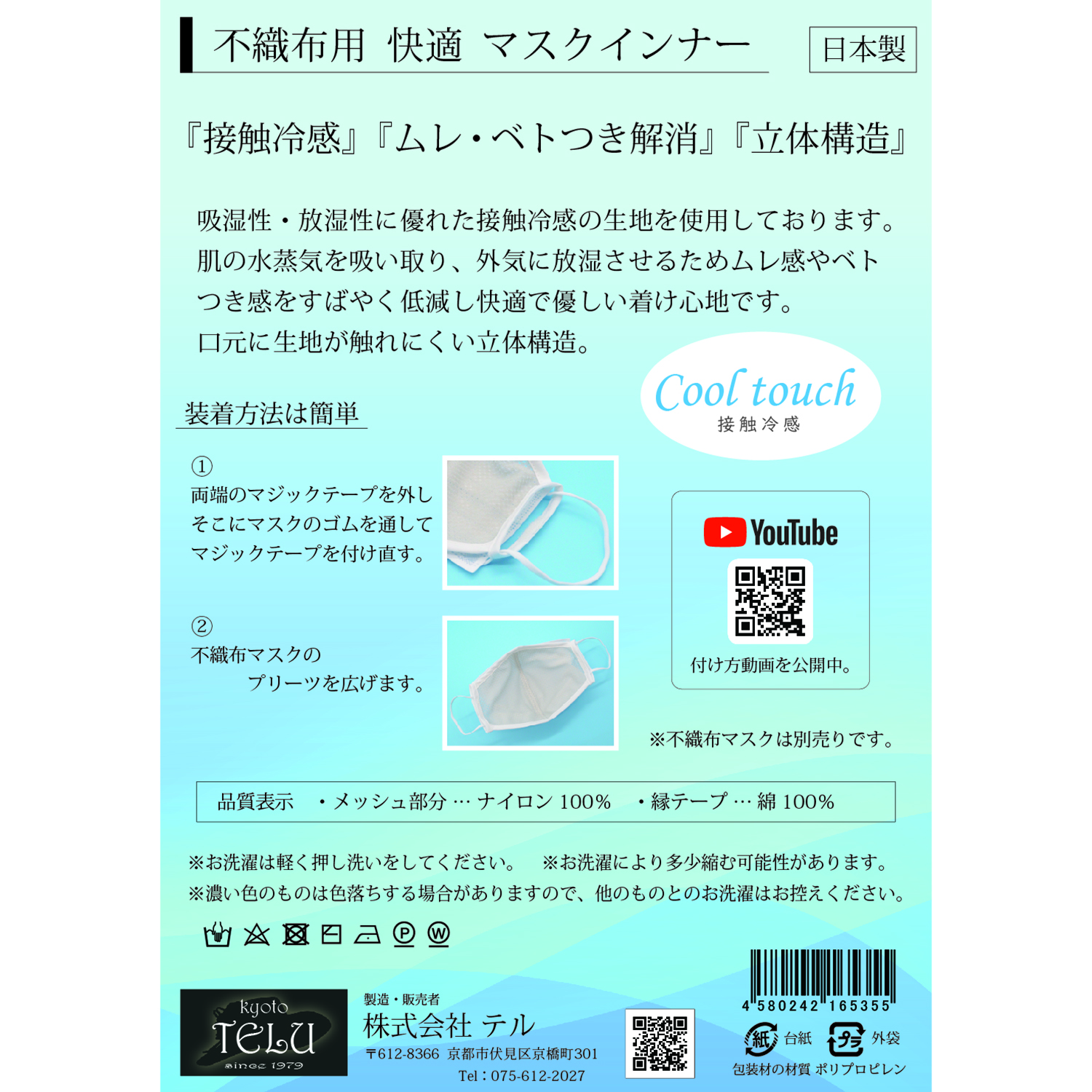 - 不織布マスクの内側にさらりとした優しい肌ざわりのマスクインナー。『接触冷感』『ムレ・ベトつき解消』『立体構造』
